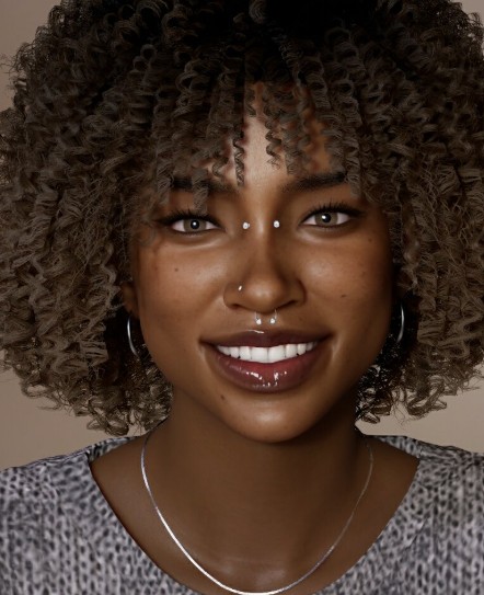 Beautiful black female Inzoi character with curly hair. DOWNLOAD