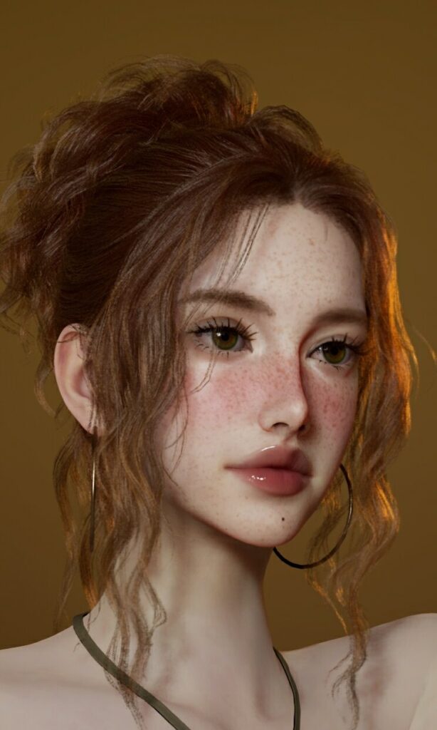 Beautiful female zoi with red hair & freckles (ginger girl). DOWNLOAD this female Inzoi character for free