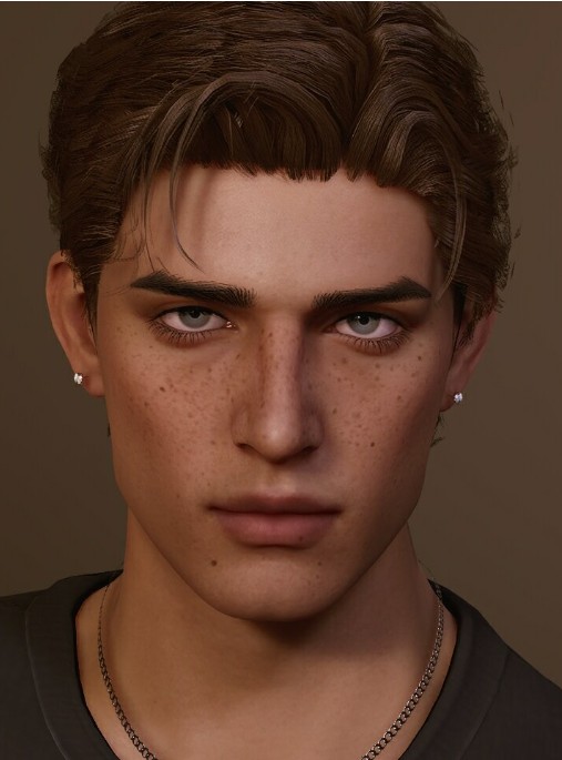 Realistic male Inzoi character with brown medium length hair. DOWNLOAD this male zoi for free