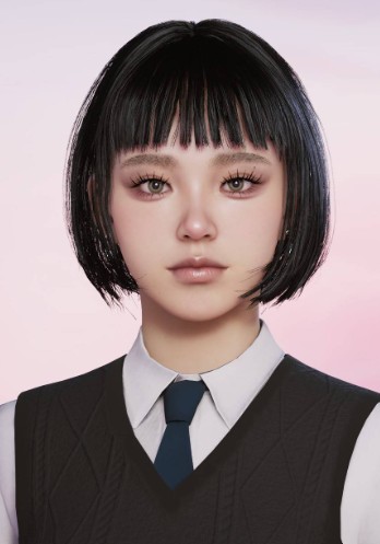 A short bob hairstyle with straight bangs for female zois.