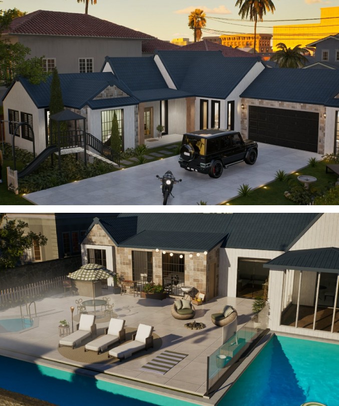 This is a fully furnished family home with 2br, the master bedroom has an attached nursery that can be converted into a 3br. Pool, greenhouse, eat-in kitchen, living room, 2 full bathrooms, garage and workshop.