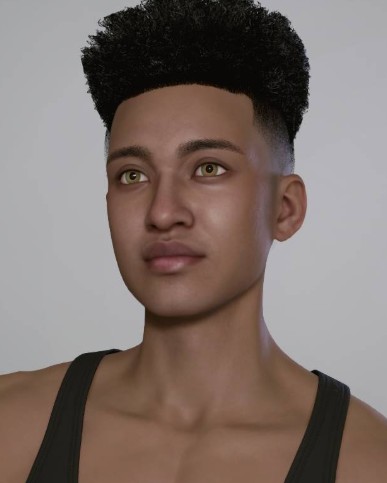 Short, modern textured hairstyle for male zois. Perfect for black or African male characters.